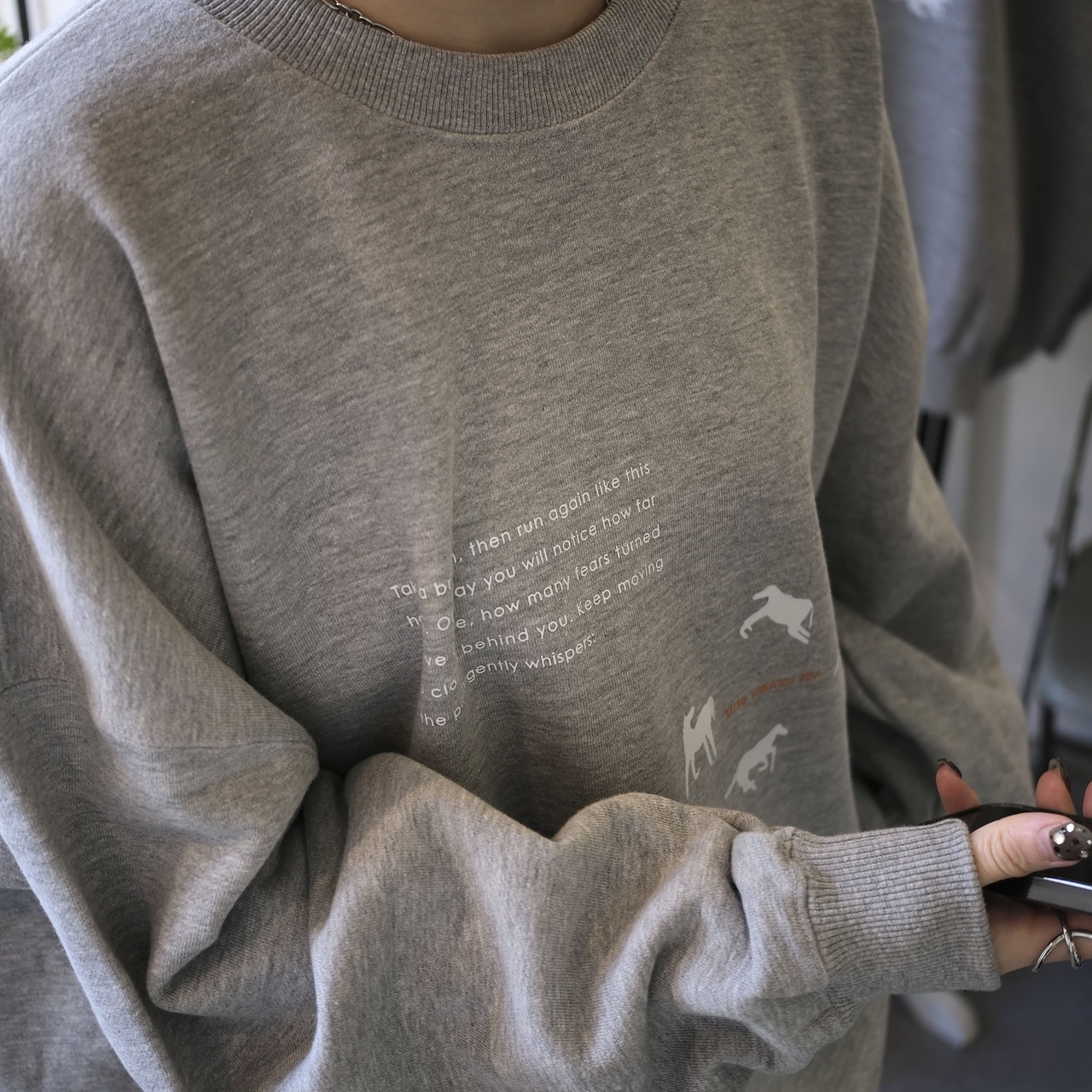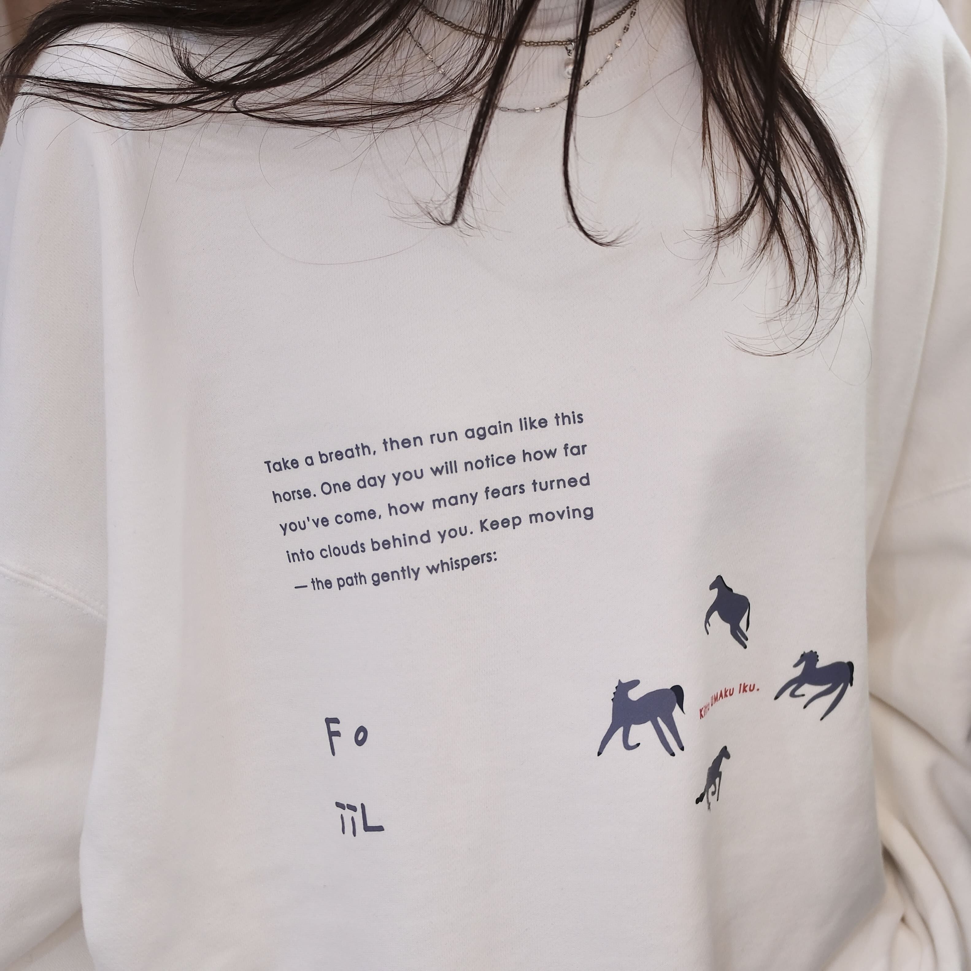 小さなメッセージを胸元にあしらったスウェットです。